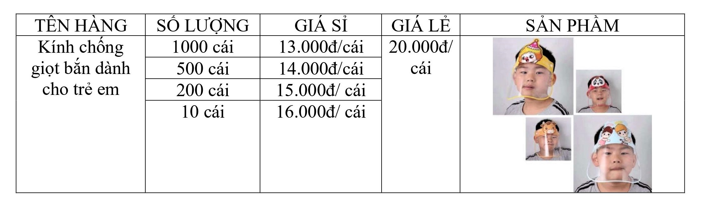 - Đai kính chống giọt bắn trẻ em được in hình các họa tiết dễ thương cho cả bé trai và bé gái