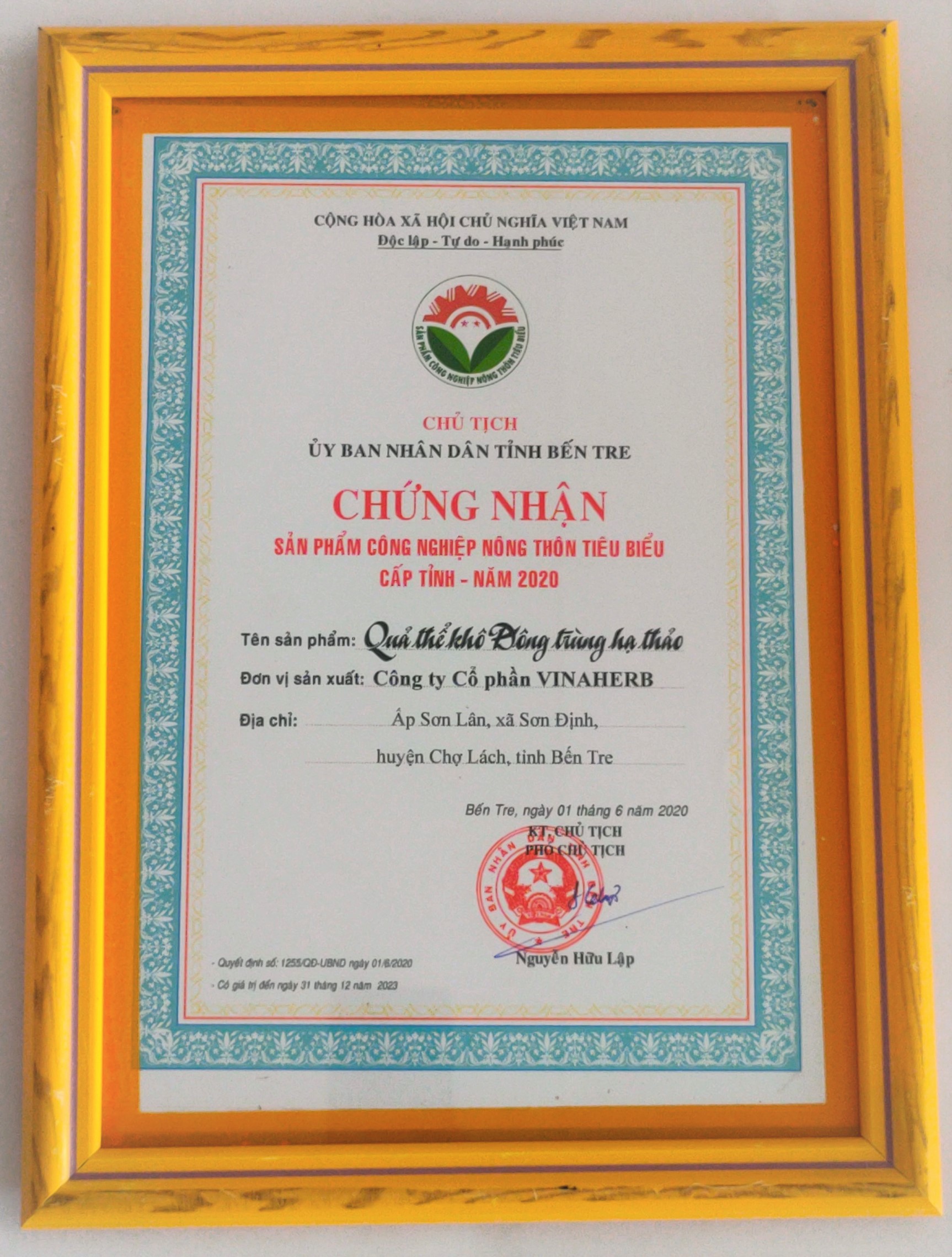 Sản phẩm được ỦY BAN NHÂN DÂN TỈNH BẾN TRE công nhận là