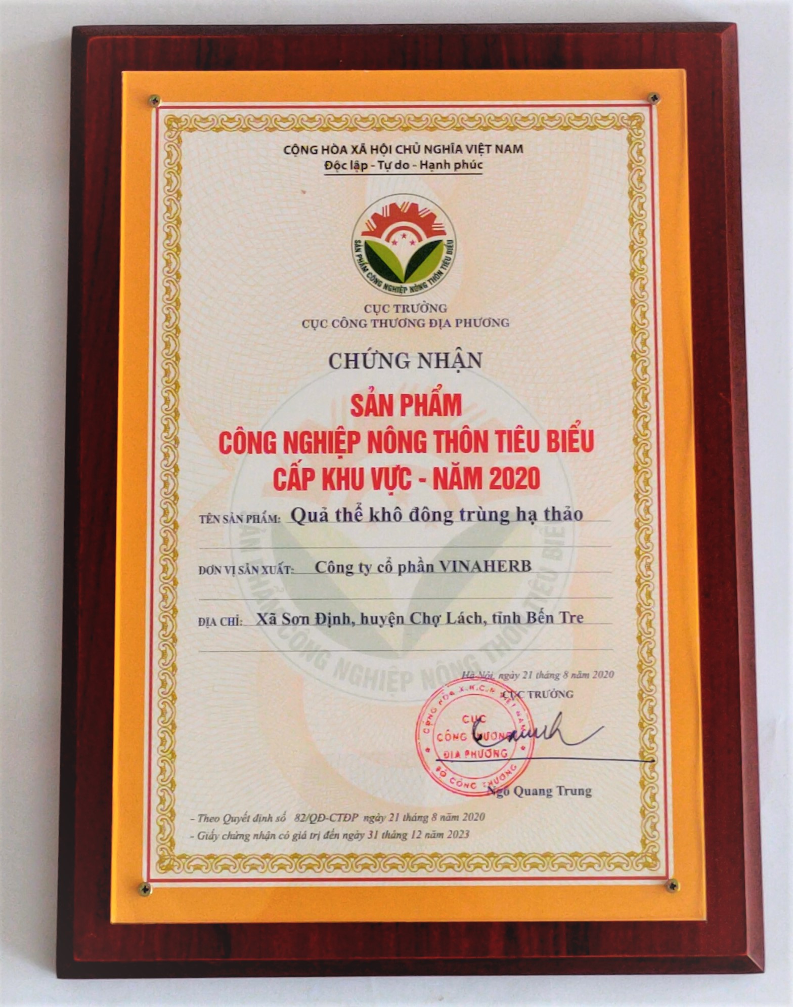Sản phẩm được TỔNG CỤC NÔNG NGHIỆP VÀ PHÁT TRIỂN NÔNG THÔN VIỆT NAM vinh danh đạt
